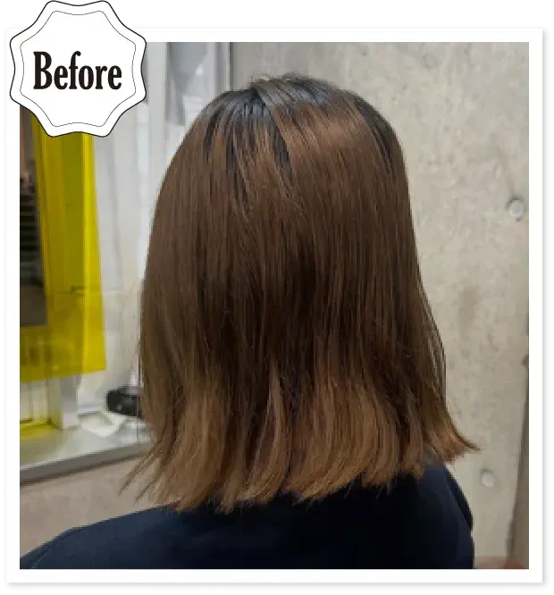強い色味の薬ではないので、柔らかくナチュラルな仕上がりになっているのが特徴です!似合わせやすい色味なので、万能にご提案できるカラーです。