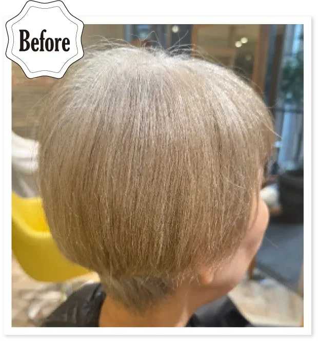 白髪への変化に対するデザイン提案でお客様にも楽しんでいただき、周りの方からも褒めてもらえるスタイルづくりを意識しています
