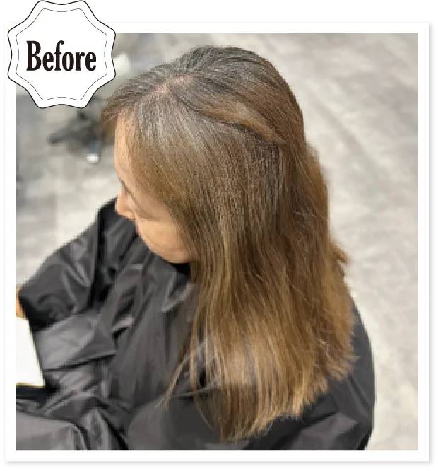 色落ちも想定し落ち着いた明るさで、色が抜けながらもカラーを楽しめるように設定。特に顔周りの白髪率が多い箇所は、ロイヤルヴェールはめちゃくちゃ綺麗です。白髪をポジティブに生かしました!