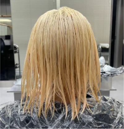 99ベースで68を10%入れるだけというシンプルなレシピで、99のパープルグレージュの色調がブリーチベースにとてもよく馴染みます。