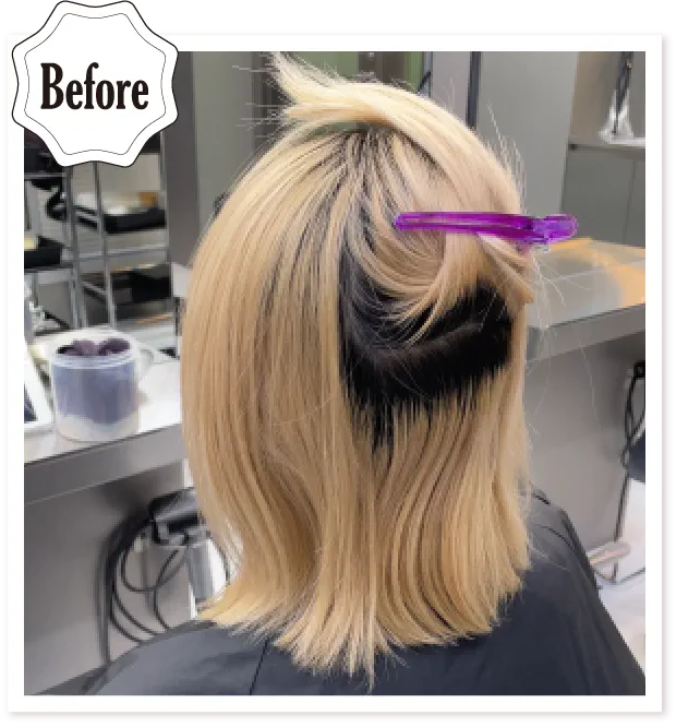 ギラつきやすいブリーチベースの髪でも、色落ちまで完璧なまろやかさを保ち、色落ち過程まで楽しめます。ムラ補正力もあり複雑な履歴の方でもベースを綺麗に整えることができます。